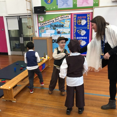 Year 2 enjoyed a Great Fire of London drama day yesterday. They worked together to try to put the fire out using water from the River Thames and used fire hooks to pull down buildings. Eventually, they found out how to set a fire break and saw the impact of this when burning down the houses!