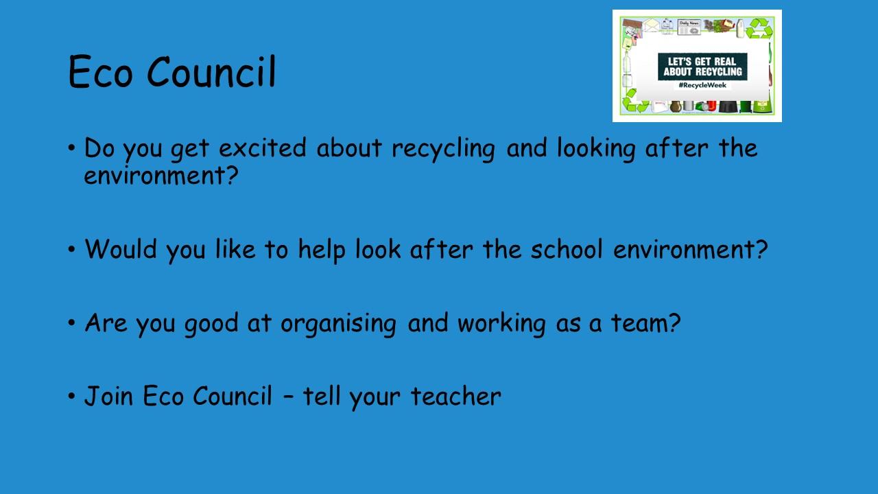 Heatherlands Eco Council We marked the start of Eco Council this year with a very enthusiastic litter pick and a then we surveyed the children in the playground on their recycling knowledge. Most children knew that paper; cardboard and plastic bottles could be recycled but were not sure on paper towels or glue sticks. So we have decided to make clear signs for the classroom to make sure everyone gets it right.