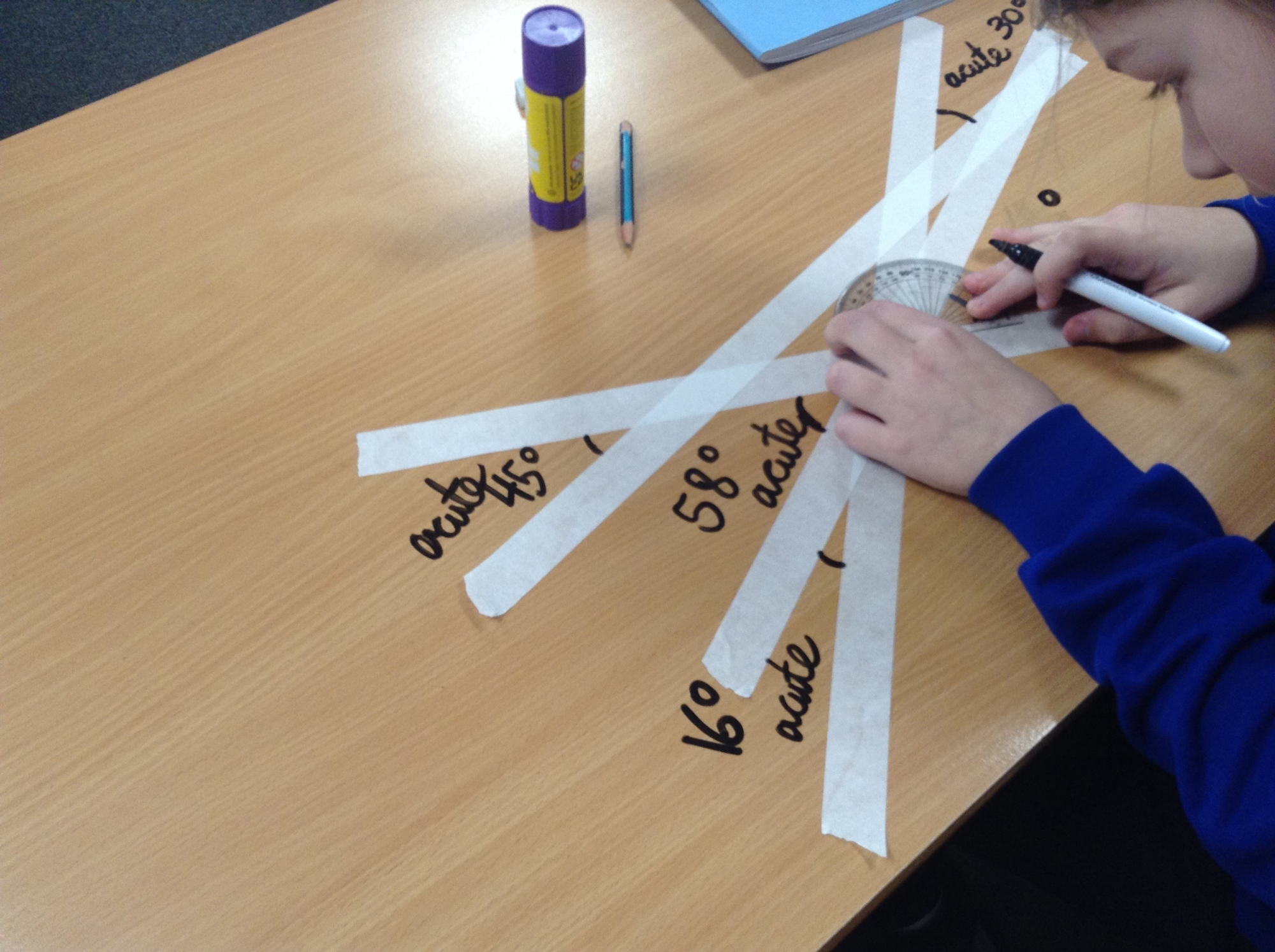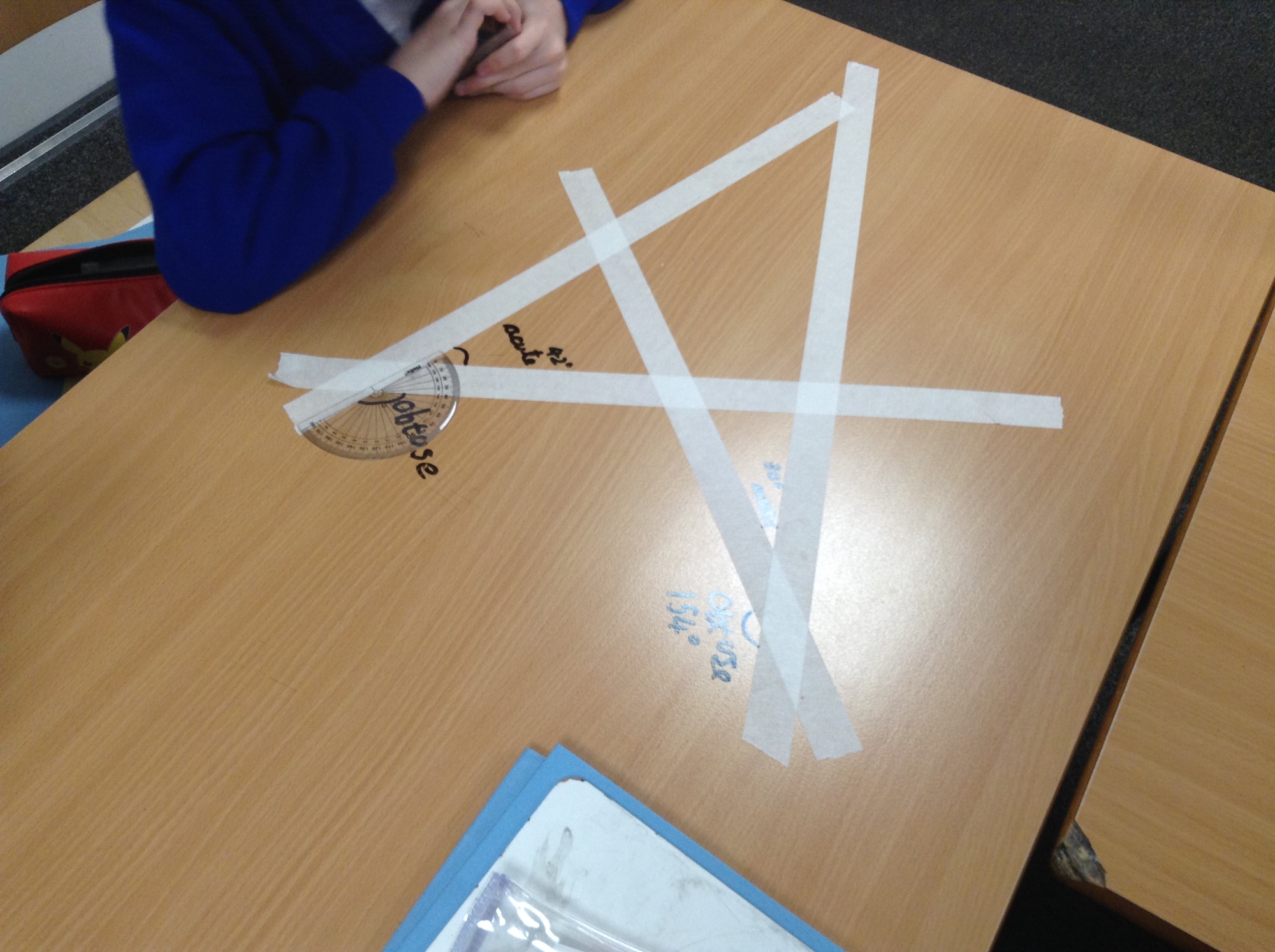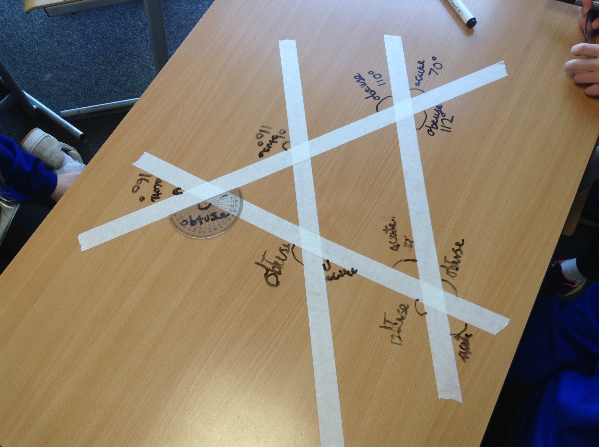 On Friday 9th January, Year 5 took their angle exploration to a whole new level, turning the classroom tables into a geometric pattern. Using strips of masking tape, pupils designed their own unique line patterns, each one filled with opportunities to spot and classify angles.