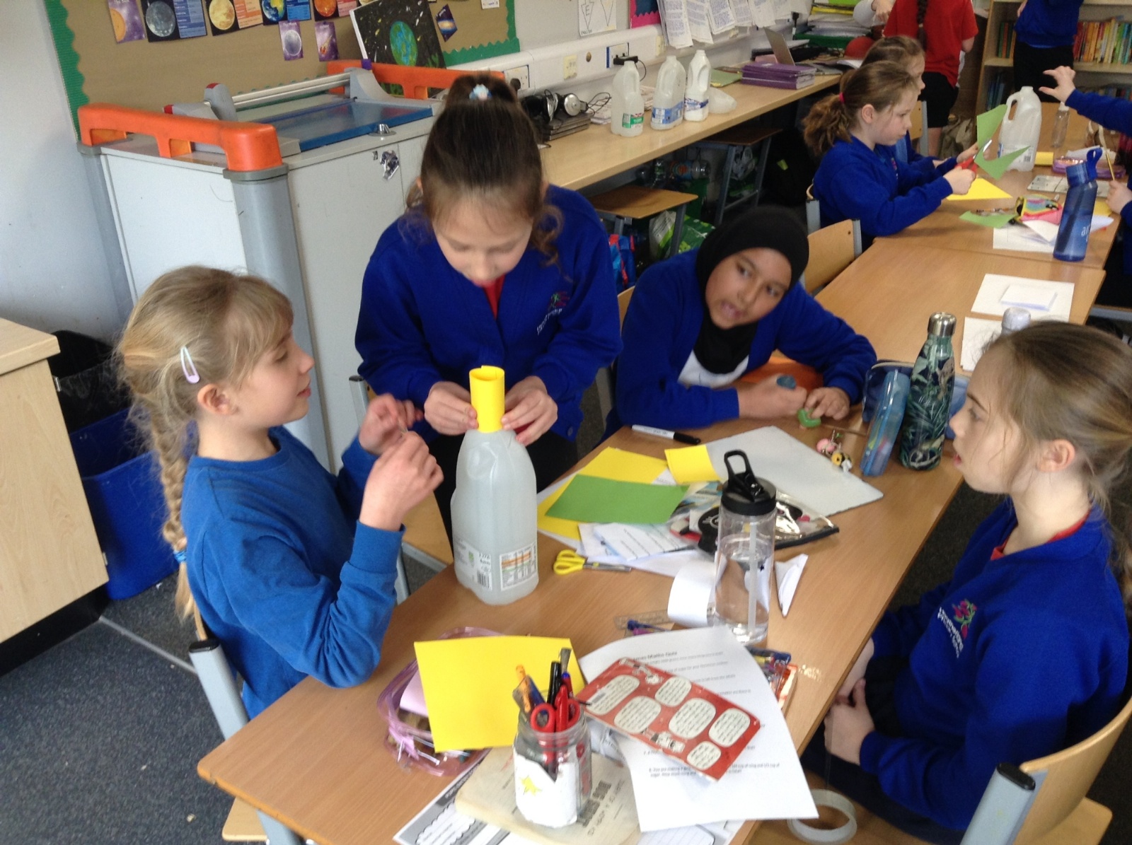 As part of their enquiry, pupils identified their independent and dependent variables, and discussed how to ensure it was a fair test. They then designed and created launchers using plastic bottles and tested how high their paper models could fly.