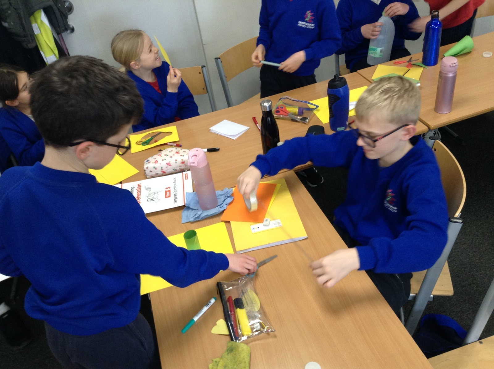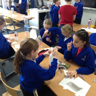 Year 5 explored the effects of air resistance and discovered how streamlined objects experience less drag. Children were given a selection of materials and asked to develop their own key investigation questions, such as “Does the size affect how high it flies?” or “Does the material affect how high it flies?”
