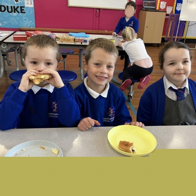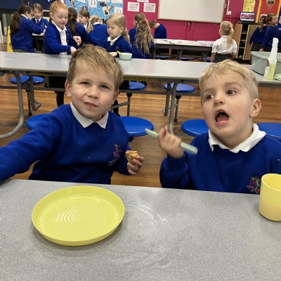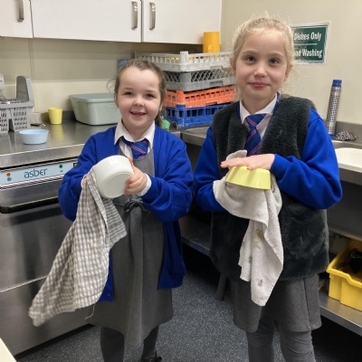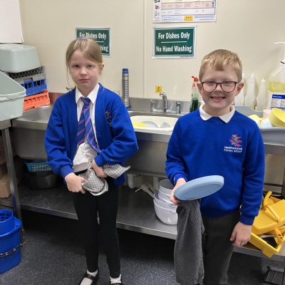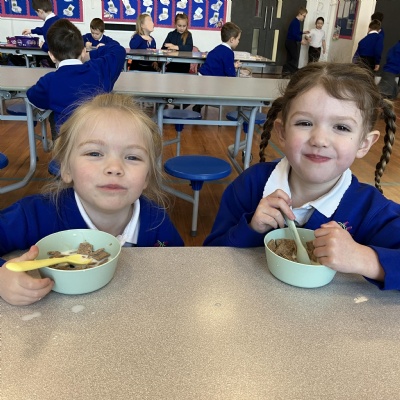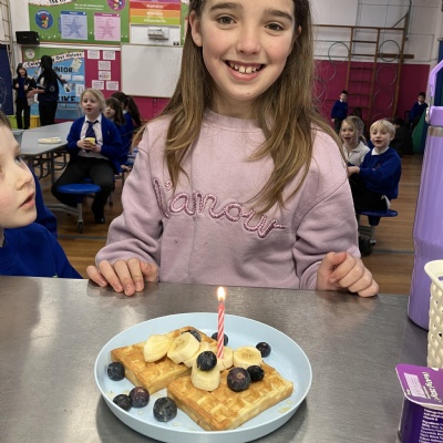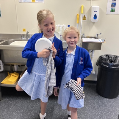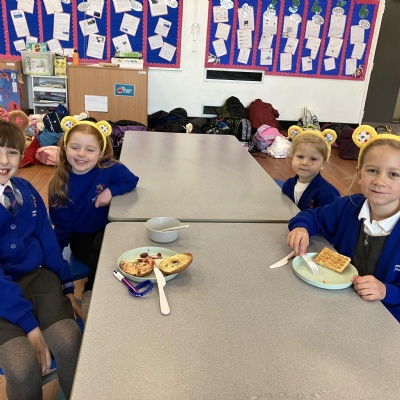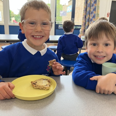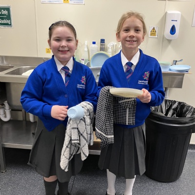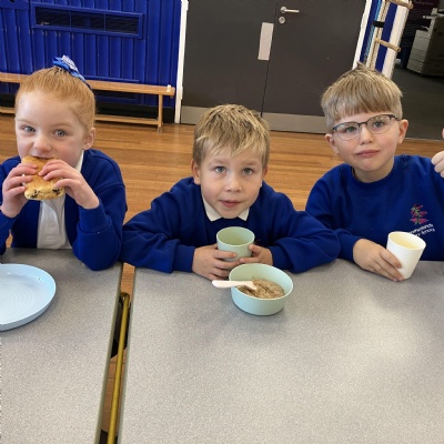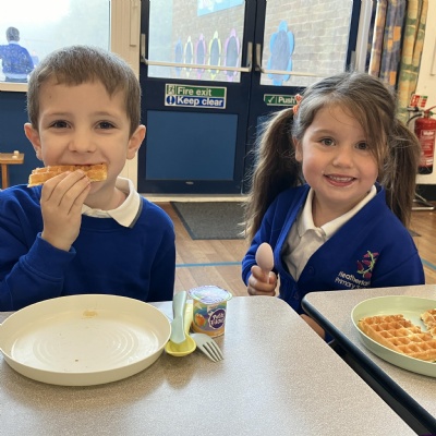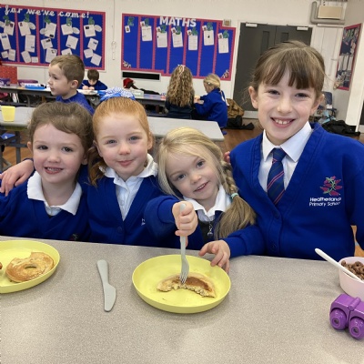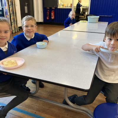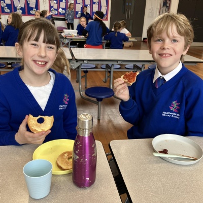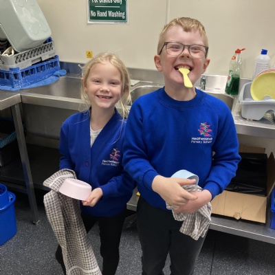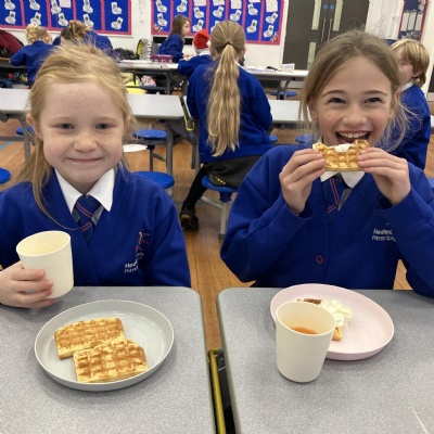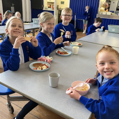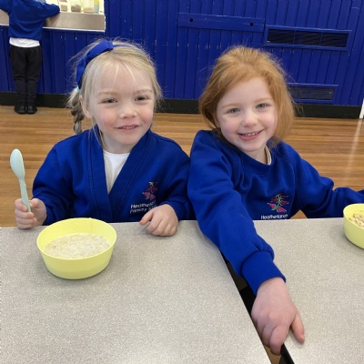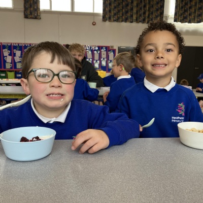 Mrs Andrews is stepping back from breakfast club. She was invited as guest of honour this morning at the Heatherlands Lounge! Miss Marsh, who has been a regular helper, will be filling her shoes as of today.