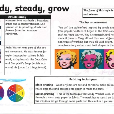We are buzzing with excitement about all the brilliant activities happening this half term! In our Ready, Steady, Grow topic, the children have been experimenting with recreating Andy Warhol’s iconic pop art using flowers. They've been learning about printing techniques and playing with complementary colours to create stunning pieces that we can't wait for you to see!
