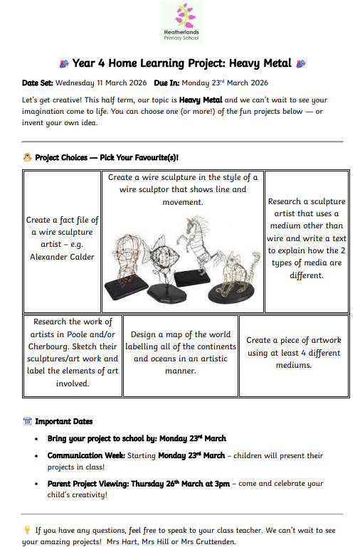 'Heavy Metal' home learning February 2026
