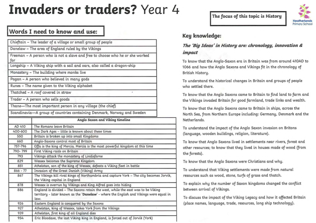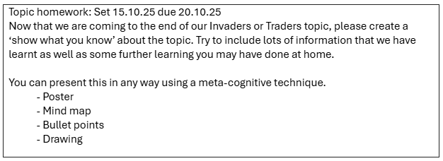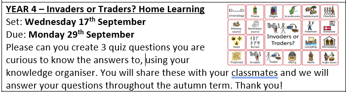 Year 4 Home Learning Project Autumn 2025 'Invaders or Traders?'