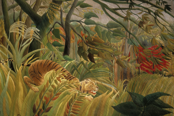 In art, we have been studying the work of a famous artist called Henri Rousseau, in particular a painting called 'The Surprise.' The subject is a tiger in the Amazon Rainforest. We have used this as inspiration for our own paintings. We have thought about perspective and even making our work 'dream like.'
