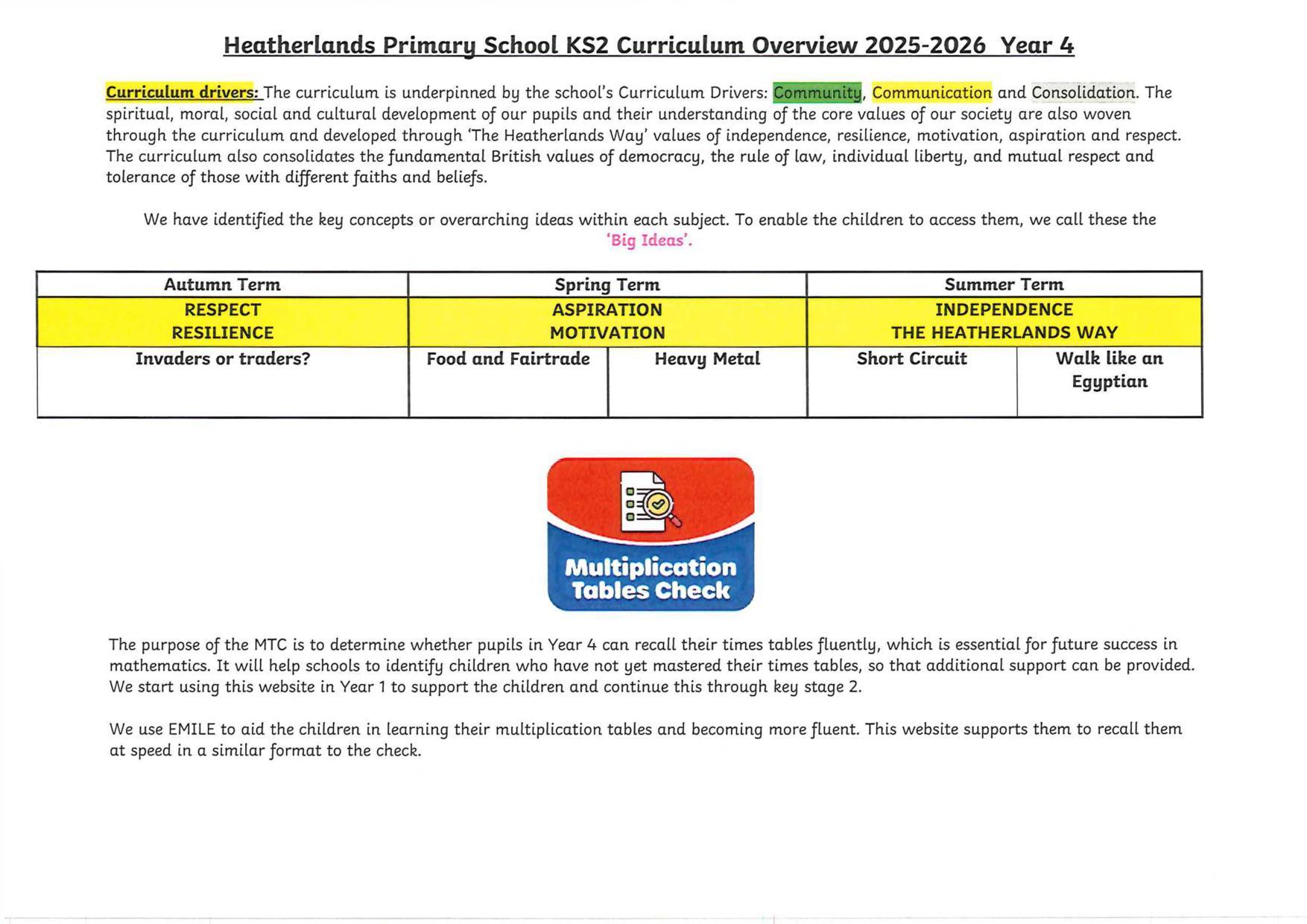 Yr4 Knowledge organisers - 2025 2026