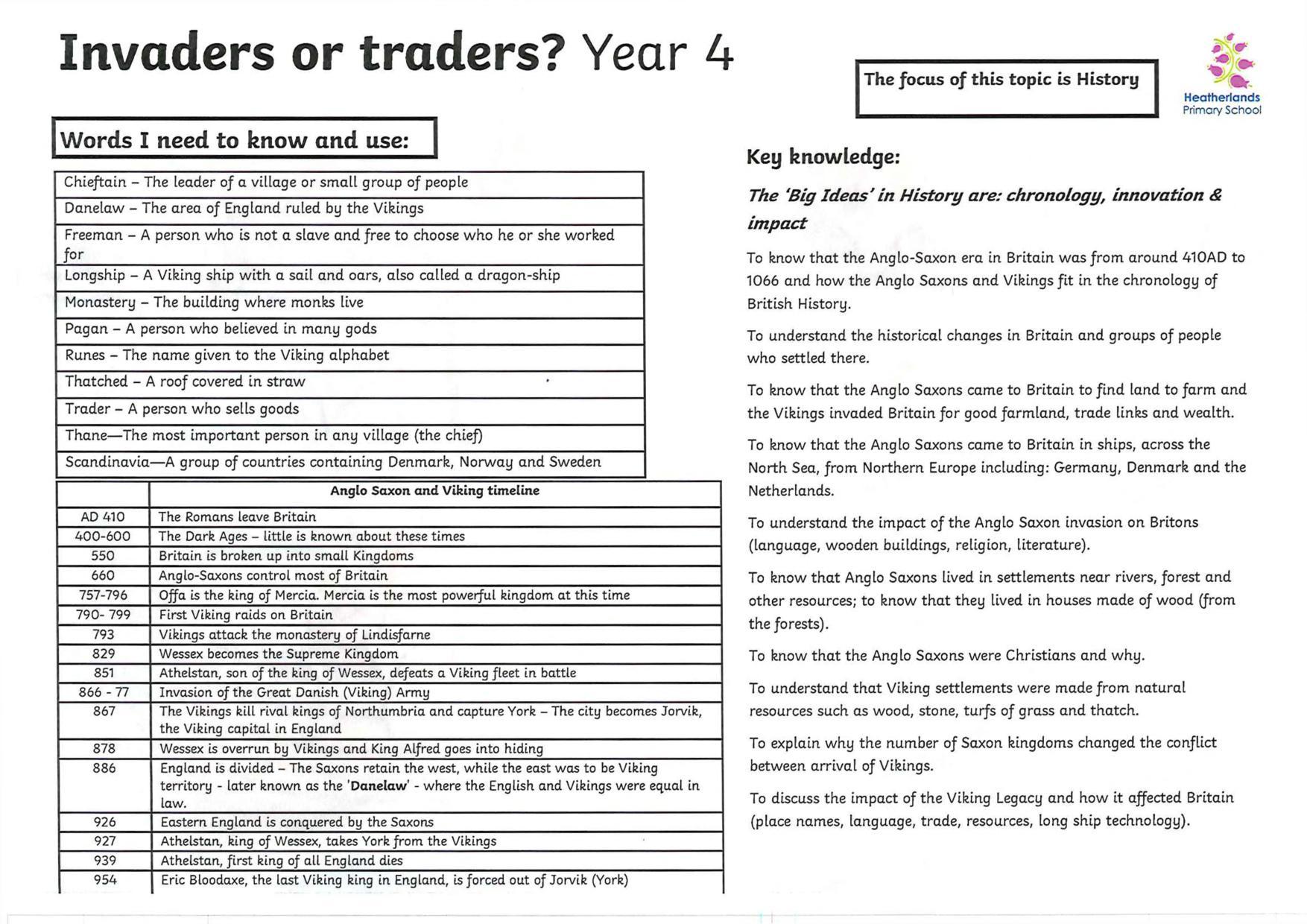 'Invaders or Traders' knowledge organiser Autumn 1 2025 2026