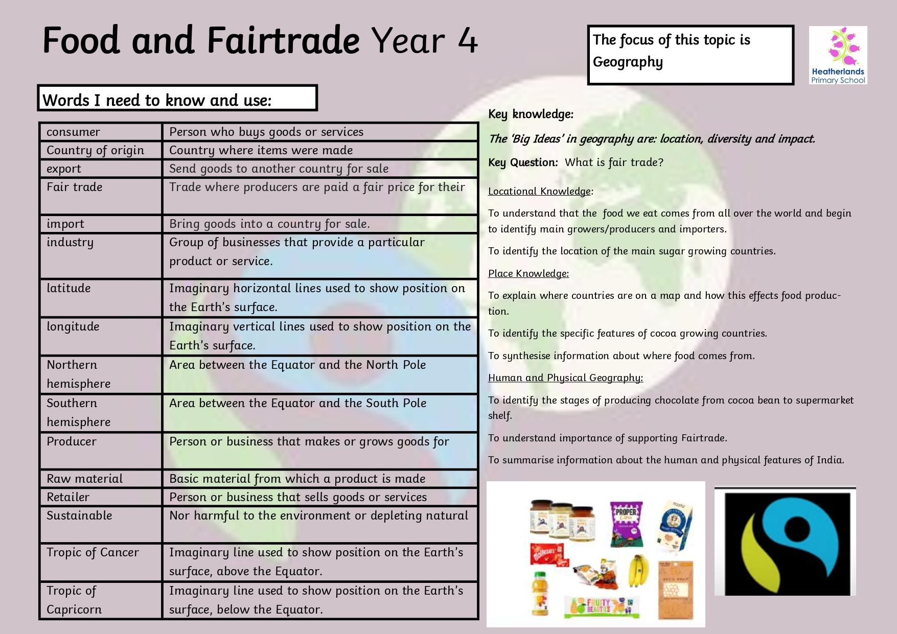 'Food and Fairtrade' Knowledge Organisers