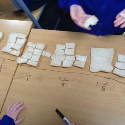 In maths, we’ve been exploring fractions using bread as a real-life context to help us understand number lines (give it a go at home—it’s surprisingly effective!). This week we’ll be learning about improper factions and how they can be turned into a mixed number.