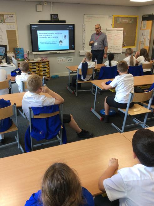 This week, Year 5 enjoyed an informative talk from a Humanist speaker. We love learning about different religions and worldviews, as it helps us respect others’ beliefs. Our guest speaker explained that Humanists don’t follow a religion but hold strong views on right and wrong. They celebrate occasions such as Christmas and Halloween, yet they don’t follow religions tied to these events. Importantly, their aspiration is for everyone to live a good life based on reason and compassion—known as the 'good life'.