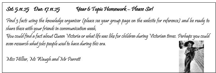 Year 6 Home Learning Project Autumn 2025 'Please Sir!'