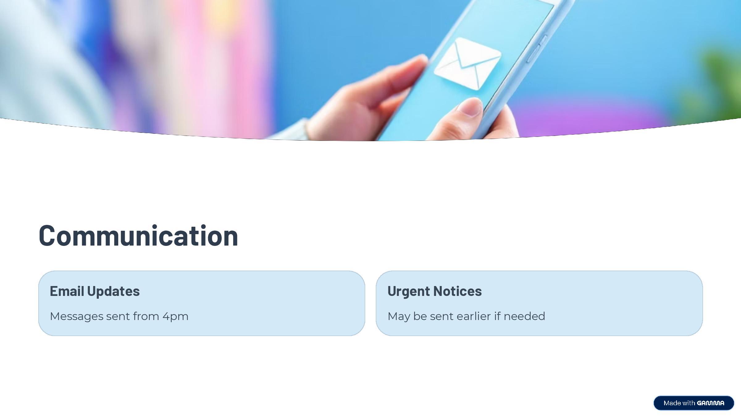 Please phone the office if you have an urgent message or enquiry.